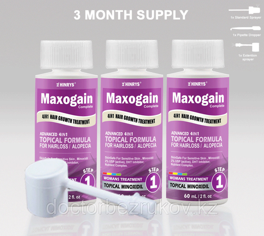 Maxogain — комплексная система лечения облысения у женщин. Максогейн эффективно лечит как внутренние, так и внешние причины выпадения волос с помощью мощной комбинации стимуляторов фолликулов, ингибиторов ДГТ, минералов, питательных веществ и защитных средств. Maxogain превосходит традиционные процедуры три к одному, он доступен, прост в использовании и работает!